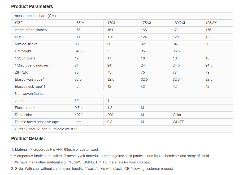 Isolation protective clothing is Type 5/6 approved +EN1149-1 anti-static